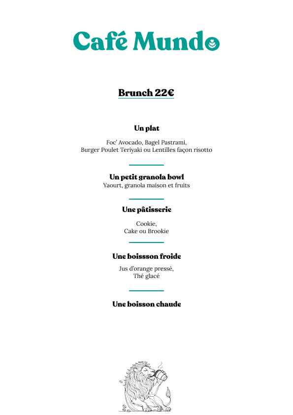 Situé rive droite, place Stalingrad, profitez d’un Brunch sur notre terrasse ombragée ou à l’intérieur. On vous accueille tous les jours pour un moment convivial. Tous nos plats et desserts sont faits maison.